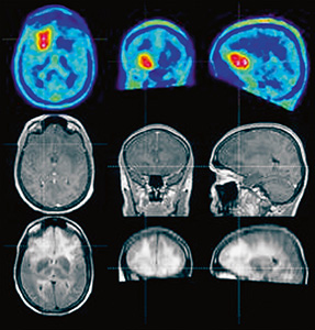 Verschiedene diagnostische Methoden Dies wird über einen kurzen und sehr starken Stromimpuls durch eine am Kopf des Patienten anliegende Spule erreicht, die ein Magnetfeld erzeugt. Dieses Magnetfeld führt zu einer Aktivierung bzw. Deaktivierung der Nervenzellen im Bereich unterhalb der Spulenmitte. Es hat sich gezeigt, dass dieses Verfahren noch exakter als die funktionelle MRT wichtige Hirnareale, z.B. zur Ausdehung eines Tumors, abgrenzen kann. Die Magnetresonanzspektroskopie (MRS) kann den Spiegel von körpereigenen Abbauprodukten in z.B. Gliomen bestimmen und ist ein weiteres bildgebendes Verfahren, das Tumore im Gehirn abgrenzen und darstellen kann. Die Positronenemissionstomographie (PET) mit Markern (Tracer) wie Glukose und verschiedenen Aminosäuren (Thymidin, Methionin, Phenylalanin) stellt eine wertvolle Untersuchungsmethode dar, die Aufschluss über den Stoffwechsel im Gehirn und im Tumor liefern kann. Dieses Verfahren kommt vor allem bei Patienten mit dem Verdacht auf ein Wiederauftreten des Tumors (Rezidiv) nach erfolgter Behandlung zum Einsatz (Brandsma, 2008). Neurochirurgische Therapieoptionen Die Standardtherapie für ein neu diagnostiziertes Glioblastom ist mehrgleisig und beinhaltet die neurochirurgisch durchgeführte Entfernung des Tumors, gefolgt von einer Strahlentherapie plus begleitender Chemotherapie. Eine maximale Tumorverkleinerung – wenn möglich – verbessert dabei signifikant das Überleben der Patienten (Sanai & Berger, 2008). Die Bedeutung der Neurochirurgie in der Behandlung hirneigener Tumore, wie denen der Gliome, liegt dabei in der Fähigkeit, das Ausmaß einer sicheren Tumorentfernung zu maximieren und vor der Operation vorhandene Beschwerden und Ausfälle, die durch den Tumor verursacht worden sind, zu verringern. Die sichere Abgrenzung wichtiger Funktionsgebiete im Gehirn zum Tumor ist dabei von entscheidender Bedeutung. Trotz großer Fortschritte in der vor der Operation durchgeführten Diagnostik stellt die Darstellung und Abgrenzung des Tumors während der Operation den entscheidenden Schritt dar. Dies bedeutet aus Sicht des Operateurs zunächst das Verständnis für den Faserbahnenverlauf, für die Sprache, das Empfinden, die Kraft und die Sehbahn (Penfield & Rasmussen, 1960). Diese Bahnen können zum Teil unter und während der Operation dargestellt und zum Tumor abgegrenzt werden. (Keles, 2004). Die Aufzeichnung von motorisch und sensibel evozierten Potenzialen (MEP) unter der Operation ermöglicht die Einschätzung des funktionellen Erhalts der genannten Regionen und ihrer Faservernetzung. Diese Methoden liefern aber keine Echtzeitinformation während der Operation. Aufgrund der Schmerzunempfindlichkeit des Gehirns bietet die Operation am wachen Patienten ein weiteres sehr genaues und zuverlässiges Verfahren, um bei der Entfernung von z.B. Gliomen in direkter Nähe zu Funktionsarealen, die Bahnen für Kraft, Empfinden, Sprache und sogar Merkfähigkeit zu erkennen. Dies bietet den größtmöglichen Schutz vor neurologischen Defiziten (Ilmberger et al., 2008). Tatsächlich erlauben diese Methoden bei ihrem überlegten Einsatz, dass mehr als 90% aller Hirntumore heute ohne permanentes Defizit operiert werden können. (Yasargil & Reeves, 1992; Moshel et al., 2008; Hentschel & Lang, 2005) Die Darstellung des Tumors unter der Operation auch in seiner Ausdehnung selbst stellt zweifelsohne eines der spannendsten Gebiete in der operativen Neurochirurgie dar. Die Schwierigkeit hierbei ist, dass bei hirneigenen Tumoren die Abgrenzung zu normalem Gewebe gewährleistet sein muss, umso mehr bei Beziehungen zu erwähnten Funktionsarealen. Zur Anwendung kommt hier u.a. ein Vorläufer eines eisenhaltigen Farbstoffes roter Blutkörperchen (Häms), die 5-Amino-4-oxopentansäure (ALA), die zu einem fluoreszierenden Purpurfarbstoff (Prophyrin) abgebaut wird. Die Gabe von ALA ins Blut führt dabei zu einer Anhäufung von fluoreszierenden Porphyrinen in allen Zellen. Das Gewebe von bösartigen Gliomen (WHO-Grad III und IV) zeigte eine Anhäufung von Porphyrinen als Reaktion auf die Gabe von 5-ALA (Stummer et al., 2006). Eine weitere Möglichkeit besteht in der Anwendung von Indocyaningrün (ICG), einem fluoreszierenden Farbstoff (Hansen, 1993). Die Neuronavigation ist ein fester Bestandteil sowohl in der Planung als auch Ausführung operativer Tumorentfernungen geworden und ermöglicht dem Neurochirurgen die genauere Lokalisierung und Zugangswegfindung zu hirneigenen Prozessen. Zur Planung können hier die Daten aus der MRT genutzt werden, die mit metabolischen Daten wie z.B. aus PET und MSI fusioniert werden können. Limitiert wird dies in der Anwendung durch dynamische Änderungen des intrakraniellen Raumes (brain shift) während der Operation selbst, die letztlich die präoperativ gewonnenen Daten nicht mehr nutzbar machen. Diese Limitierung kann durch den Einsatz einer intraoperativen Bildgebung behoben werden. Neben der zwei- und dreidimensionalen Sonographie (Rasmussen, 2007) kommen hier die Computertomographie und Magnetresonanztomographie zum Einsatz. Bei der MRT werden geschlossene (short-bore), horizontale, vertikal-offene und mobile Geräte unterschieden (Mittal & Black, 2006). Die Verfügbarkeit von mobilen intraoperativen MRT-Scannern ermöglicht eine signifikante Steigerung des Resektionsgrades höhergradiger Gliome und bietet darüber hinaus die Möglichkeit, präoperativ gewonnene Informationen zur Abgrenzung eloquenter Hirnareale intraoperativ zu fusionieren und damit darzustellen (Senft et al., 2008). Es kann somit noch während des operativen Eingriffes das Ausmaß der (bildmorphologischen) Resektion abgeschätzt werden. Es muss aber an dieser Stelle noch einmal daraufhin gewiesen werden, dass es bisher kein bildgebendes Verfahren gibt, das das Ausmaß hirneigener Gliome sicher quantifizieren kann und die Methode der intraoperativen MRT bei Nicht-Kontrastmittel aufnehmenden Prozessen an ihre Grenzen stößt. Ausblick Die meisten Patienten m