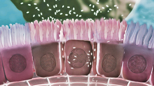 Abb. 2 Durchbrochene Darmschleimschicht – Erhöhtes Risiko für die Entstehung von Morbus Crohn