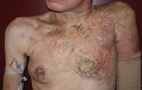 Abb. 3a (links): ausgedehntes Brustwandrezidiv mit