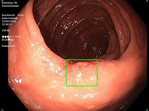 Foto: © Universitätsklinikum Freiburg Um bei einer Darmspiegelung noch mehr und kleinere Krebsvorstufen sicher zu entdecken, setzen Endoskopie-Expert*innen des Universitätsklinikums Freiburg jetzt auf Künstliche Intelligenz (KI). Das System analysiert während der Darmspiegelung, auch Koloskopie genannt, die Live-Videobilder und markiert verdächtige Stellen auf dem Monitor mit einem grünen Rechteck. Studien zeigen, dass Ärzt*innen damit etwa zehn Prozent mehr Krebsvorstufen finden als ohne KI-Unterstützung. Seit Jahresbeginn werden am Universitätsklinikum Freiburg alle Vorsorgekoloskopien mit Hilfe des neuen Systems durchgeführt. Mehr als 50 Personen wurden so bereits erfolgreich untersucht. Damit ist Freiburg das erste Universitätsklinikum in Deutschland, das die neue Technik regulär einsetzt. „Mit Unterstützung der Künstlichen Intelligenz können wir unseren Patient*innen noch größere Sicherheit bei der Darmkrebsvorsorge bieten“, sagt PD Dr. Arthur Schmidt, Leiter der Interdisziplinären Endoskopie an der Klinik für Innere Medizin II des Universitätsklinikums Freiburg. Das System kann auch sehr erfahrenen Mediziner*innen helfen, auffällige Gewebestrukturen sicherer zu erkennen. „Damit können wir insbesondere sehr kleine Vorstufen noch sicherer entdecken und entfernen“, so Schmidt. Das System wurde anhand mehrerer tausend Aufnahmen verdächtiger Krebsvorstufen mit dem sogenannten Deep-Learning-Verfahren trainiert. Dabei entwickelte die Software eigene Suchmuster, mit denen die Erfolgsquote für das Erkennen dieser Gewebe besonders hoch war. Da die optischen Markierungen unmittelbar währen der Untersuchung in das Koloskopie-Bild eingeblendet werden, ist keine Einarbeitungszeit für die Ärzt*innen nötig.